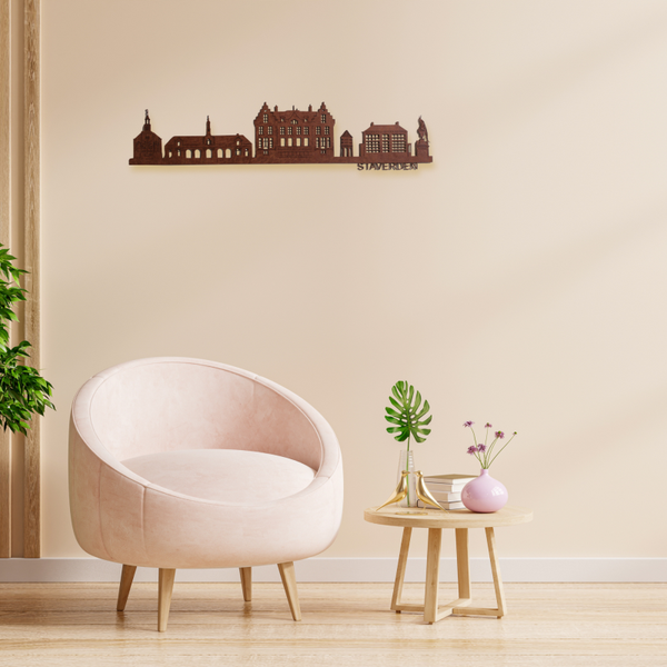 Onder de skyline prijkt de naam "Staverden" voor een iconisch accent. Perfect als stijlvolle eyecatcher in huis, op kantoor of als uniek cadeau!